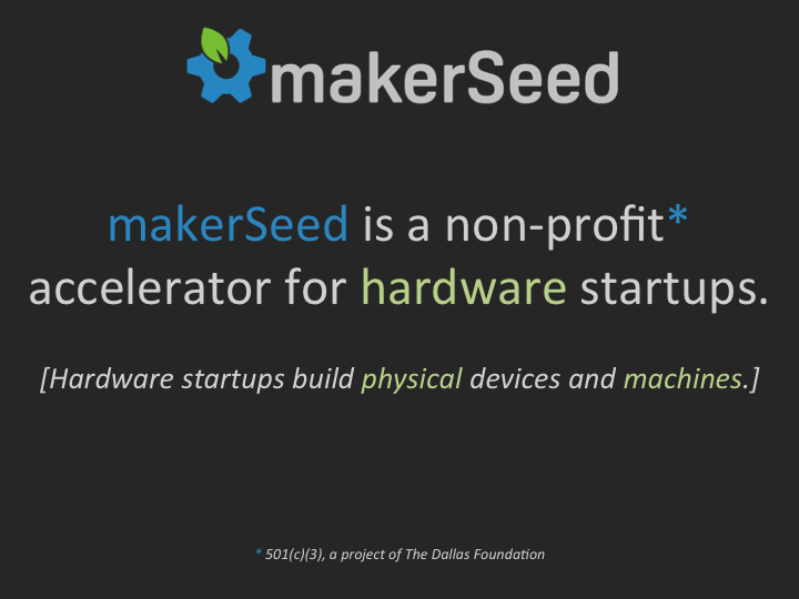 The Dallas Foundation has agreed to act as fiscal sponsor for makerSeed in lieu of IRS nonprofit status determination....